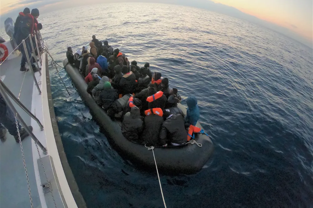 Sahil Güvenlik Komutanlığı, Urla açıklarında lastik bot içerisinde 9'u çocuk 23 düzensiz göçmenin yakalandığını açıkladı.