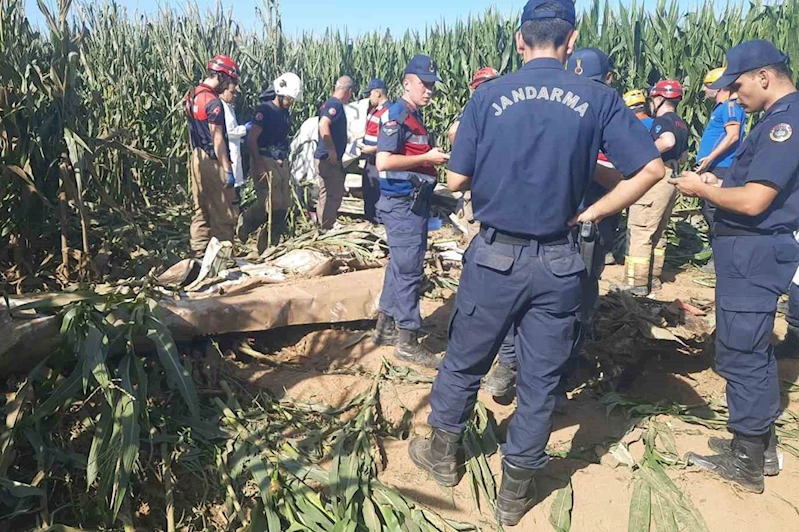 Görüntüde uçağın dik bir şekilde mısır tarlasına düştüğü görüldü. (İLKHA)