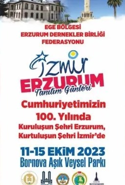 Ege Bölgesi Erzurum Dernekler Birliği Federasyonu'nun düzenlediği 'Erzurum Tanıtım Günleri' 11-15 Ekim tarihleri arasında İzmir'de başlayacak.
