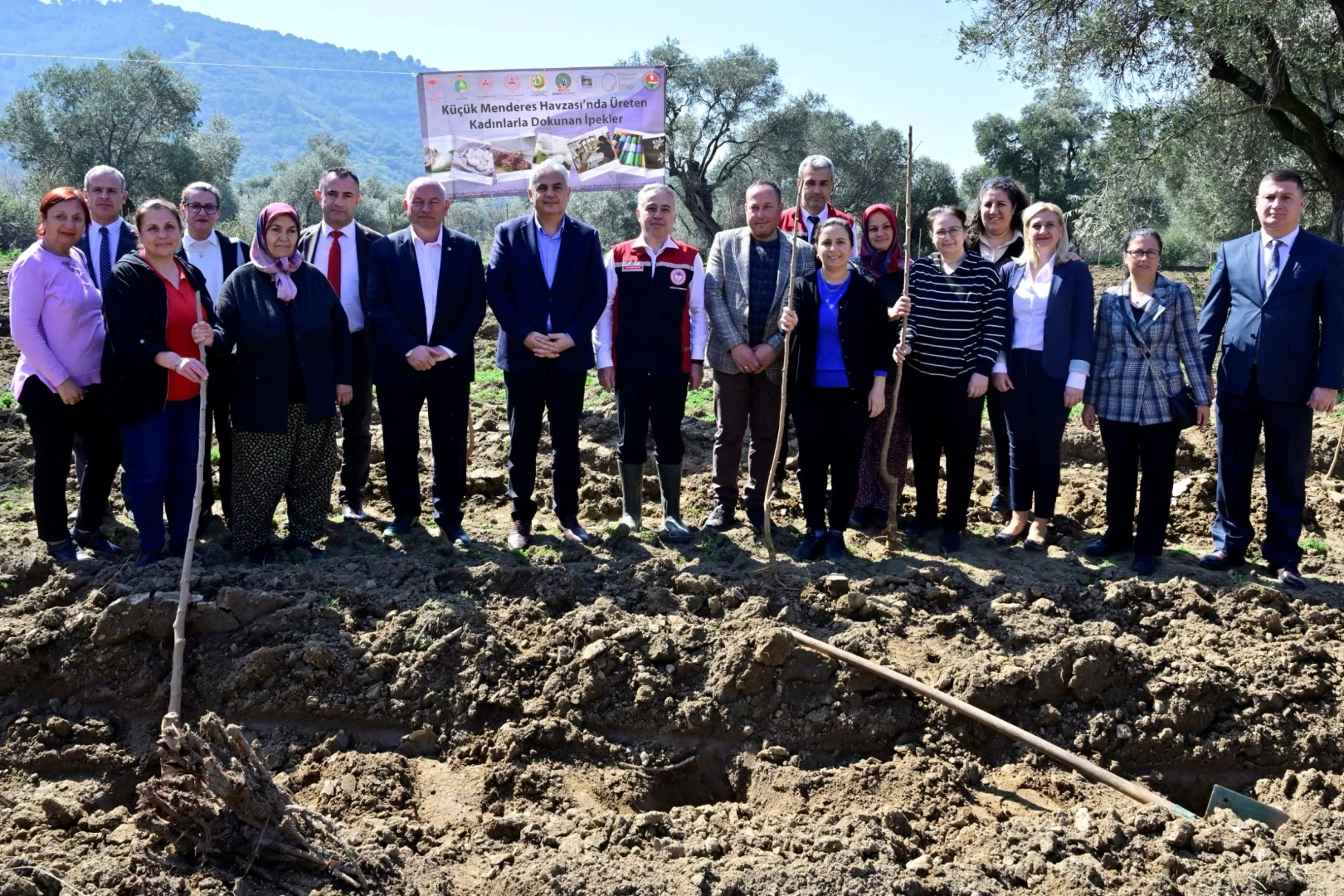 İzmir’de ipek böceği yetiştiriciliğini canlandırmak ve kadın çiftçileri desteklemek amacıyla yürütülen “Küçük Menderes Havzası’nda Üreten Kadınlarla Dokunan İpekler” projesi kapsamında önemli bir adım daha atıldı. Ödemiş Zeytinlik Mahallesi’nde düzenlenen etkinlikte 400 adet dut fidanı toprakla buluştu.