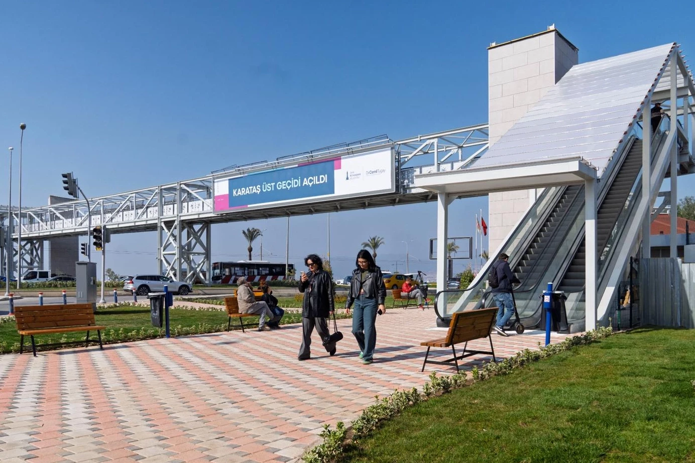 İzmir Büyükşehir Belediyesi, Mustafa Kemal Sahil Bulvarı’nda yaya ve araç trafiğini daha güvenli ve konforlu hale getirecek Karataş Yaya Üst Geçidi’ni hizmete açtı. Öğrenciler başta olmak üzere bölge halkının doğrudan tramvay durağı ve sahil şeridine ulaşmasını sağlayan üst geçit, Mustafa Kemal Sahil Bulvarı üzerindeki araçların bekleme süresini de azalttı. 81 metre uzunluğundaki köprü, peyzaj düzenlemesi ve seyir terasındaki Körfez manzarasıyla İzmirlilerin beğenisini topladı.