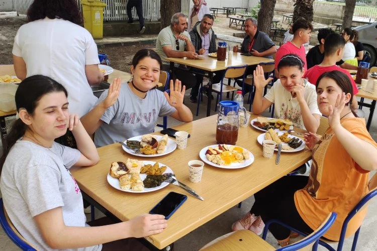 Kınık Mert Öztüre Özel Eğitim Meslek Lisesinde ‘Okulumda Sağlıklı Besleniyorum’ projesi kapsamında okul hemşiresi öncülüğünde öğrenciler ile birlikte sağlıklı beslenme etkinliği düzenlendi. Yapılan etkinlikte, öğrencilerin sevdikleri yiyecekler, okulun yemekhanesinde hep birlikte hazırlandı. Öğretmen ve öğrenciler, yaprak sarması, mercimek köftesi, börek ve irmik tatlısı yaparken okul aşçıları da mevsim meyvesi ve kuru üzüm kullanarak öğrenciler için soğuk çay hazırladı. Sağlıklı beslenmenin önemine vurgu yapılan etkinlikte, mevsiminde meyve tüketmenin faydaları anlatıldı ve ambalajlı gıdalar yerine geleneksel Türk mutfağına yönelik ev yapımı yemekler, aşçılar danışmanlığında hazırlandı. Okul personeli ve öğretmenleriyle birlikte sağlıklı beslenen öğrenciler, hep birlikte keyifli bir gün geçirdi.