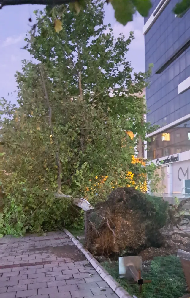 Bayraklı Manavkuyu'da da bazı ağaçların yıkıldığına dair görüntüler var.