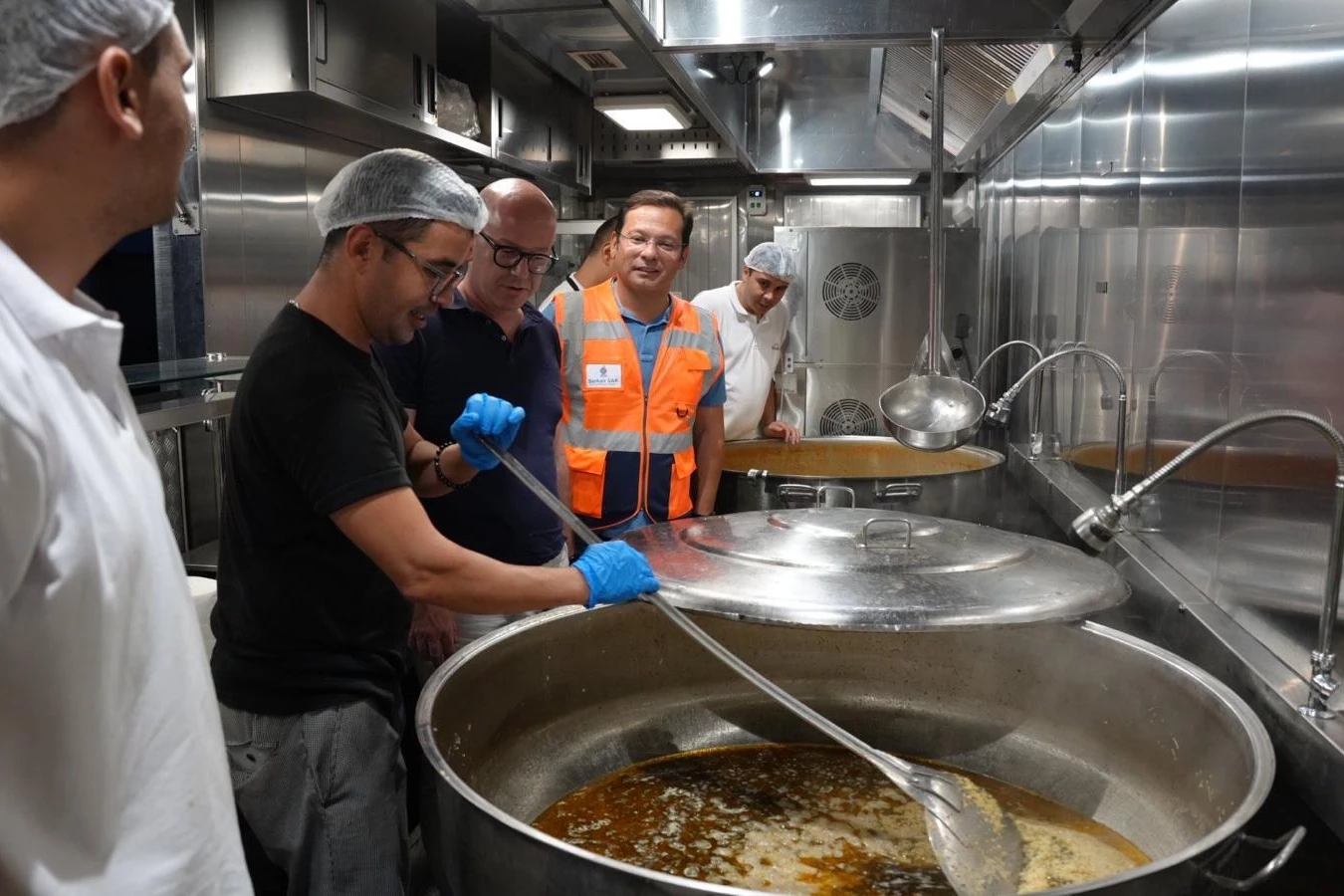 İzmir Büyükşehir Belediyesi Sosyal Hizmetler Dairesi Başkanlığı Aşevleri Şube Müdürlüğü’nde aşçı olarak görev yapan Mehmet Orhan, “Bir nebze de olsa vatandaşlarımızın yaralarını sarmaya geldik. Sabah öğle akşam olmak üzere günlük 6 bin kişilik yemek üretimini ve dağıtımını yapıyoruz. Depremden zarar gören vatandaşlarımıza geçmiş olsun. Biz varız, her zaman yanınızdayız” dedi.