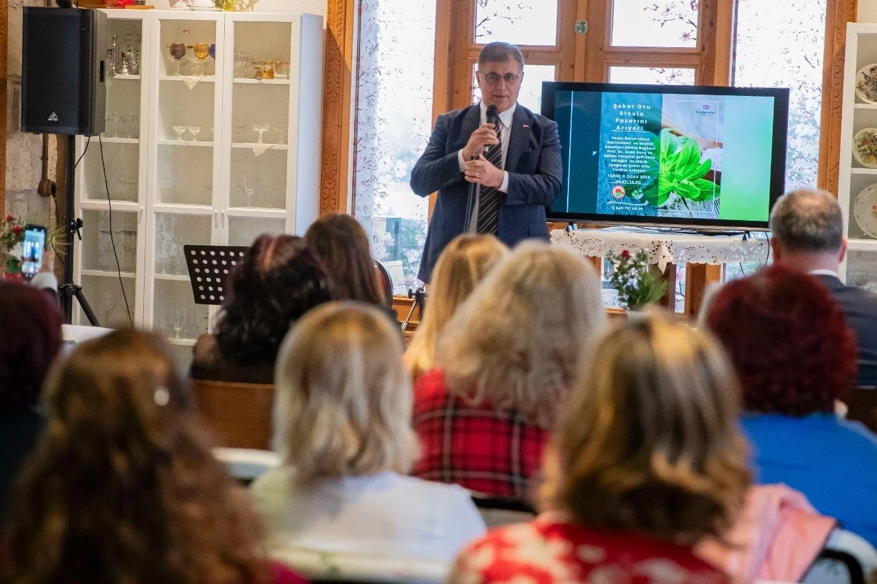 Bademler Sanat Köyü Musa Baran Çocuk Oyuncakları Müzesi Müdürü Dr. Ayşe Baran Türker de şeker otu hakkında bilgi vererek bitkinin üretimi için sanat köyü olarak destek sunacaklarını söyledi. Çamlı Üretim ve Pazarlama Kooperatifi Kurucu Üyesi Gıda Mühendisi Prof. Dr. Işık Şahbaz ise şeker otunun hijyenik olarak üretilmesinin önemine değinerek üretim tesisi kurmak istediklerini belirtti. Kooperatifin 2021 yılında kurulduğunu hatırlatan Şahbaz, “Çok çalışıyoruz. 2022 yılında stevia bitkisini ilk defa diktik ve inşallah çok daha ilerleyeceğiz” diye konuştu.