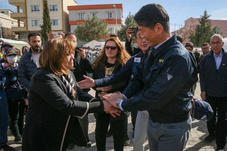 Gaziantep Büyükşehir Belediye Başkanı Fatma Şahin ile Japonya Dışişleri Bakan Yardımcısı Yamada Kenji Gaziantep’in Oğuzeli ilçesinde Japon sağlık ekibinin kurduğu sahra hastanesini ziyaret etti.
