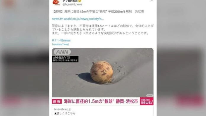Japon şehrindeki plajda bulunan gizemli bir top, polisin bölgeyi kordon altına almasına neden oldu. Yerel basına göre, cismin bir tür deniz mayını olabileceğinden endişe ediliyor.