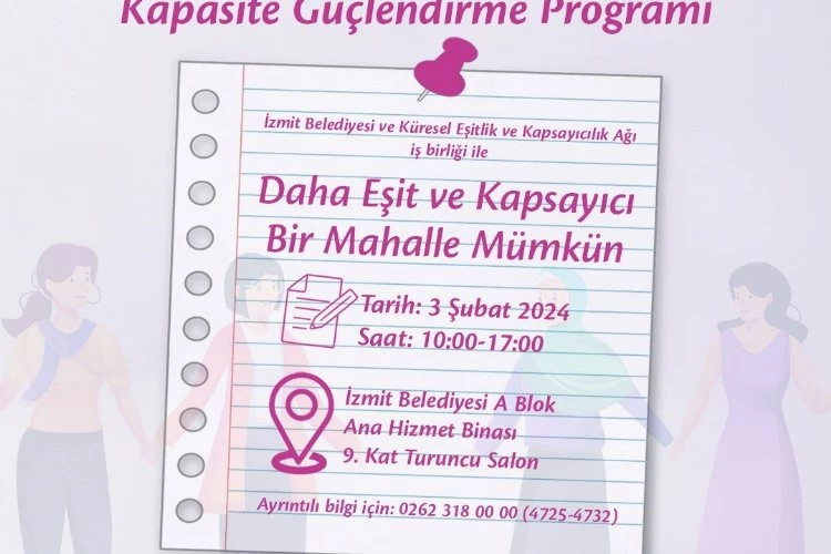 İzmit Belediyesi ve Küresel Eşitlik ve Kapsayıcılık Ağı iş birliğiyle daha eşit ve kapsayıcı mahalleler için kadın muhtar ve muhtar adaylarına kapasite güçlendirme eğitimi verilecek