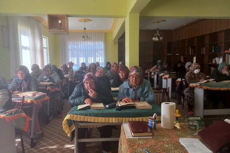 Anamur İlçe Müftülüğüne bağlı Kur’an kurslarında Kur’an-ı Kerim öğrenen kadınlar, mukabele geleneğini devam ettiriyor.