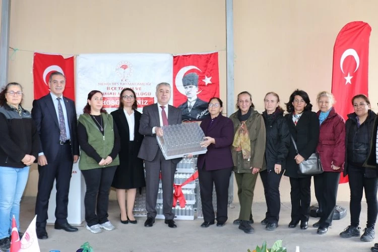 İzmir İl Tarım Müdürlüğü, Menderes Gümüldür'de faaliyet gösteren ve tamamını üretici kadınların oluşturduğu Turuncu Eller Tarımsal Kooperatifi’ne düzenlenen törenle üretim malzeme ve ekipmanlarını teslim etti.