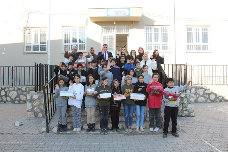 Büyükbağ Ortaokulu öğrencilerine yönelik düzenlenen yardım kampanyasında, öğrencilere giyim malzemeleri ulaştırıldı.