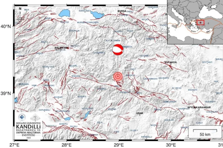 Odak derinliği 6.0 km olan sığ depremin şiddetli sarsıntılara yol açtığının altı çizilen raporda, depremin Kütahya il sınırlarının batı-güneybatısında Emet-Gediz ve Simav Fay Zonları etkisi altında olduğu belirtildi.