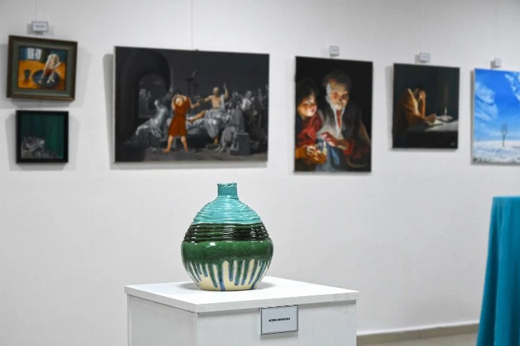 Karabağlar Belediyesi'nde çalışan 19 personelin hazırladığı içinde fotoğraf, resim, seramik, heykel, dekoratif resim, tezhip, ahşap oyma, naht ve keçeden bebek çalışmalarından oluşan karma sergi 15 Haziran tarihine kadar açık kalacak.