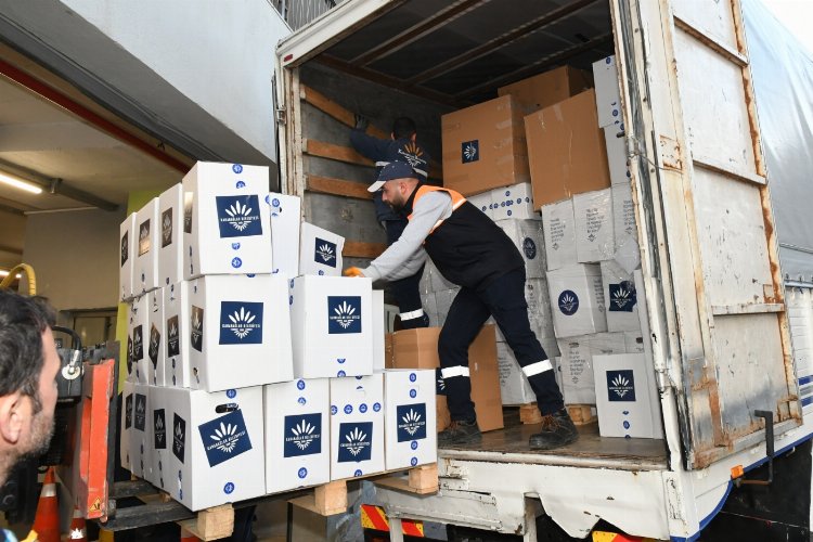 İzmir'de Karabağlar Belediyesi kuru gıda kolileriyle yüklü 2 aracı daha deprem bölgesine gönderdi.