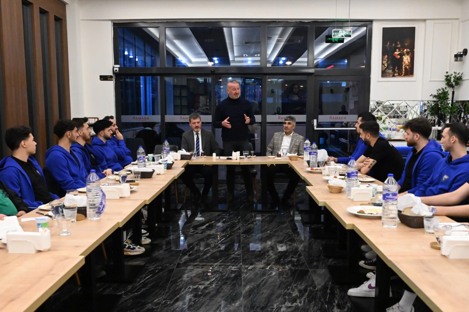 BURSA (İGFA) - Karacabey Belediye Başkanı Fatih Karabatı, Eskişehir'deki Play-Off finalleri öncesinde Karacabey Belediyespor Voleybol Takımı ile moral yemeğinde bir araya geldi.