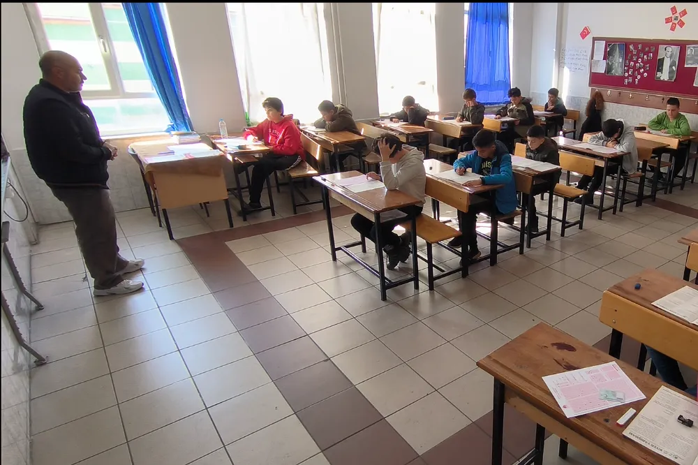 Sınava giren görme engelli bazı öğrenciler ise ayrı sınıflarda gözetmenlerin yardımı ile sınava girdiler.