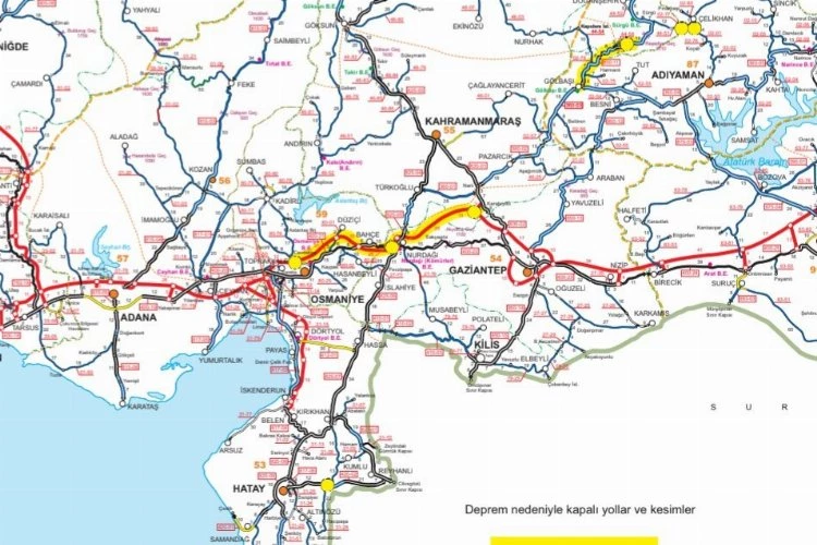 Karayolları Genel Müdürlüğü, deprem dolayısıyla kapanan yollar ve alternatif güzergahlara ilişkin harita yayımladı. Hakan Dikmen - Karayolları Genel Müdürlüğü, deprem nedeniyle kapanan yollar ve alternatif güzergâhlara ilişkin Türkiye Haritası'nı sosyal medya hesabından paylaştı.