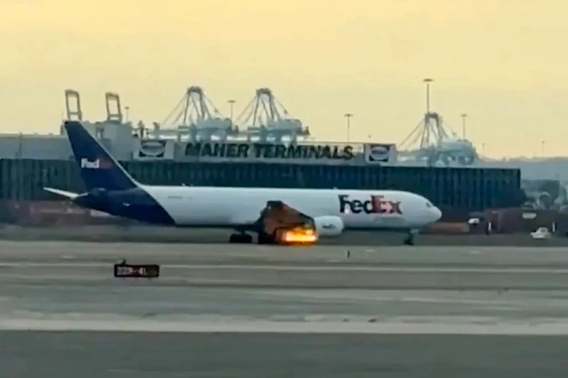ABD'nin New Jersey eyaletindeki Newark Liberty Uluslararası Havalimanı'ndan kalkan kargo uçağı havada alev aldı.