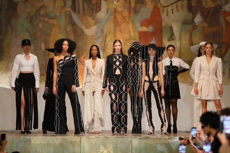 Moda haftasına katılan Türk markalar arasında yer alan Katerina Ekşioğlu’nun 12 parçalık Fall Winter 2024 koleksiyonunda keskin çizgiler ve parlak aksesuarların kontrastıyla kadın vücudunun kıvrımlarının vurgulanması dikkat çekti.