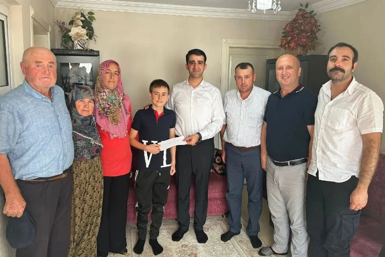Erdoğan DEMİR / EDİRNE (İGFA)- İpsala Kaymakamı Ömer Sevgili, beraberinde İlçe Millî Eğitim Müdürü Salih Mehmet Engin, Okul Müdürü Şahin Can Gören ve Okul Müdür Yardımcısı Mesut Üren ile birlikte LGS ilçe birincisi olan Sultanköy Ortaokulu öğrencisi Süleyman Kaan Akbulut'u evinde ziyaret etti. İpsala Kaymakamı Ömer Sevgili, öğrenci Süleyman Kaan Akbulut’a, hediyesini vererek başarılarının devamını diledi.