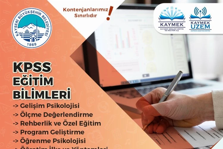 Kayseri Büyükşehir Belediyesi bünyesinde faaliyet gösteren KAYMEK A.Ş.’nin eğitim alanında yapılan çalışmaları kapsamında KAYMEK Uzaktan Eğitim Merkezi’nin (UZEM) birçok alanda gerçekleştireceği kursları için kayıtlar devam ediyor.