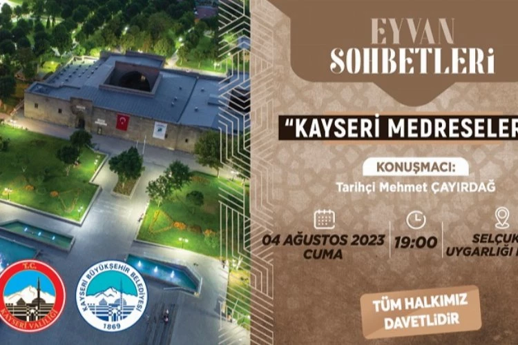 Kayseri Valiliği ve Kayseri Büyükşehir Belediyesi’nin geleneksel hale getirdiği ve kadim kent Kayseri’nin zengin kültürünün konu edildiği Eyvan Sohbetleri bu kez ‘Kayseri Medreseleri’ konusu ile gerçekleştiriliyor.