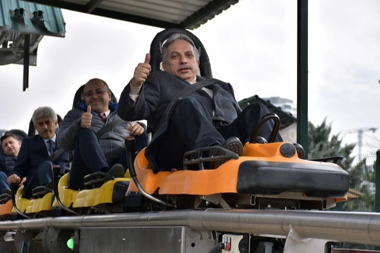 Ankara’nın Keçiören ilçesinde bulunan dağ kızağı parkurunu inceleyen Başkan Mustafa Yalçın ve beraberindekiler, yetkililerden bilgiler aldı. Başkan Yalçın ve beraberindeki heyet daha sonra kızağa binerek parkuru test etti.