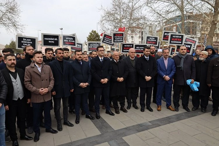 İlçe Cumhuriyet Meydanında yapılan basın açıklamasında, İslam'ın kutsal değerlerine saldırmaktan çekinmeyen terörist sevici batı dünyasına Türkiye’nin ve İslam dünyasının dinine ve değerlerine kıyamete kadar sahip çıkacakları belirtildi.