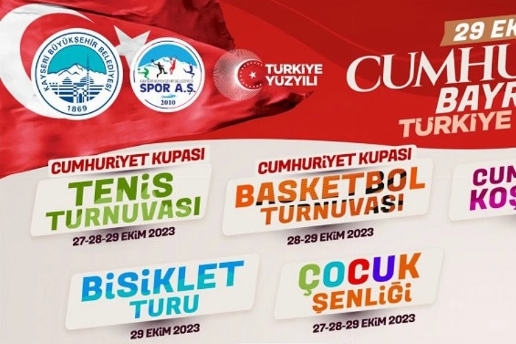 Kayseri Büyükşehir Belediyesi, Türkiye Cumhuriyeti’nin 100’üncü kuruluş yıl dönümünü tenis turnuvası, 3x3 Basketbol Turnuvası, Cumhuriyet Koşusu, Bisiklet Turu ve Çocuk Şenliği ile kutluyor.