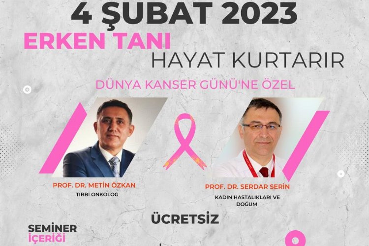 Kayseri'de de bugün Holıday Inn Otel'de ücretsiz bir etkinlik gerçekleştirilecek. Erciyes Üniversitesi Tıp Fakültesi Medikal Onkoloji Anabilim Dalı Başkanı Prof. Dr. Metin Özkan ve Kadın Hastalıkları ve Doğum Uzmanı Prof. Dr. Serdar Serin'in konuşmacı olarak katılacağı seminerde erken tanıya dikkat çekilecek. Gerçekleştirilecek olan seminer saat 12.00'e başlayacak ve 16.00'ya kadar devam edecek. Seminerde Meme Kanseri ve Rahim Ağzı Kanseri ile ilgili bilgiler verilecek.