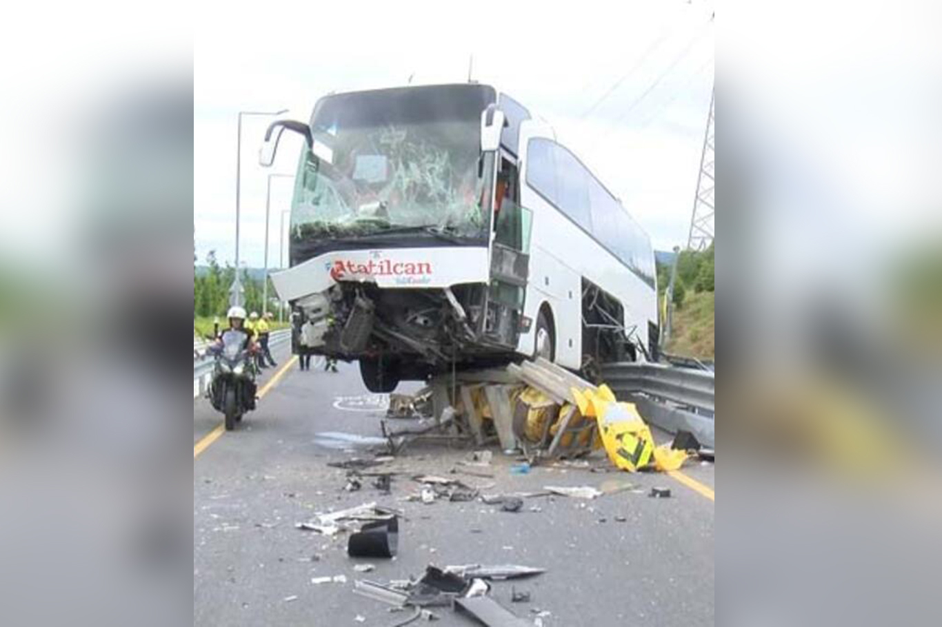 Kaza, TEM Otoyolu'ndan Kuzey Marmara Otoyolu'na saat 12.00 sıralarında meydana geldi. Edinilen bilgilere göre, Kuzey Marmara Otoyolu'na istikametine giden özelliklerin isi öğrenilemeyen tur otobüsü, sürücülerinin direksiyon hakimiyetini kaybetmesi sonucuna kısıtlamaya çarptırıldı. Çarpmanın insanların havalanan otobüsün ön kısmındaki perdelerde asılı kaldı. Kazada sürücü yaralandı. Haber verilmesi üzerine olay yerine polis ve sağlık ekipleri sevk edildi. Sağlık ekipleri yaralar ambulansla kurtarır. Otobüste yolcu bırakılmak olası bir faciayı önledi. Kazayla ilgili soruşturma başlatıldı.
