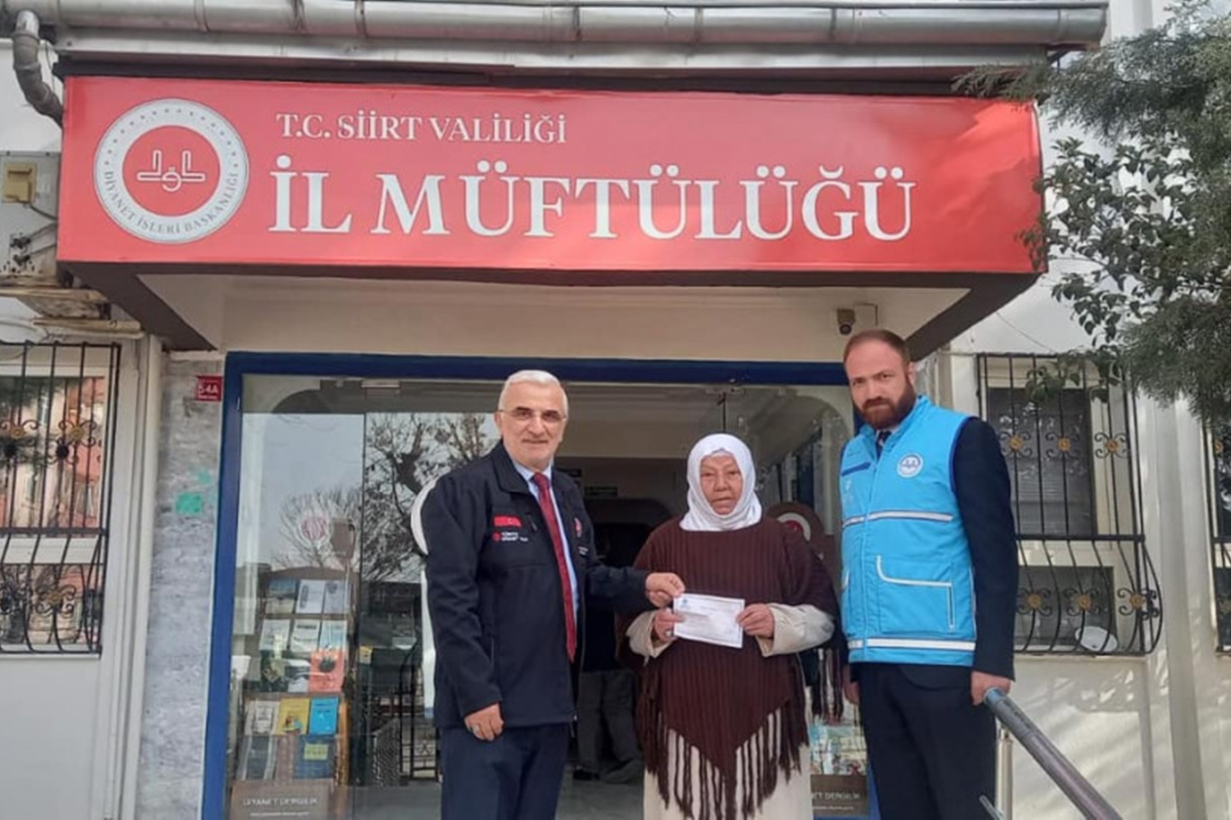 Siirt'te yaşayan Hadice Yüksek, kefen parası İçin topladığı 9 bin 450 TL'yi deprem bölgelerinde etkilemelere kullanılmak üzere TDV'ye bağışladı.