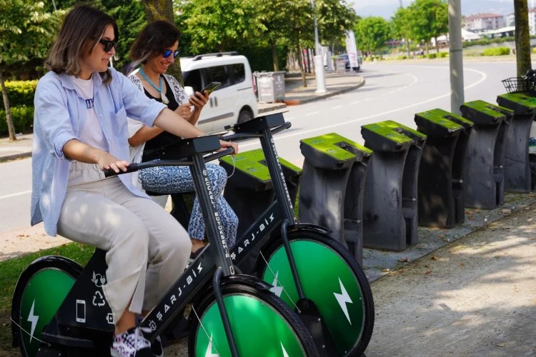 KOCAELİ (İGFA) - Vatandaşların spor yapması için Kocaeli’ni yeşil alanlar ve spor aletleriyle donatan Büyükşehir Belediyesi, kentin farklı noktalarına hareket enerjisini elektrik enerjine dönüştüren pedal bisikletler kurdu. Bisikletin zincir aksamında kullanılan özel bir sistem ile gerçek bisiklet kullanımı hissi veren projede aynı zamanda telefon ve tablet şarj edilebiliyor.