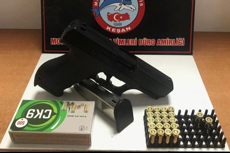 Keşan İlçe Emniyet Müdürlüğü ekipleri tarafından yapılan operasyonlarda pompalı tüfek ve kurusıkı tabanca ele geçirildi. Bu olaylarda iki kişi gözaltına alındı.