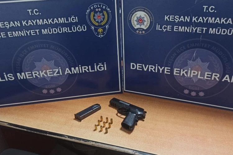 Edirne'nin Keşan ilçesinde polis ekiplerinin yaptığı uygulamada bir araçta ruhsatsız silah ele geçirildi.