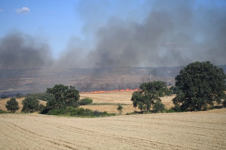 Yangında, yarısından fazlası buğday ekili olan 2 bin dönüme yakın arazinin zarar gördüğü öğrenildi.