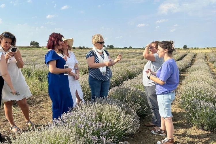 Erdoğan DEMİR / EDİRNE (İGFA) -TOBB Edirne KGK Başkan Yardımcısı Emine Günay, TOBB Edirne KGK Üyeleri Eylem Ezerçe, İlknur Yılmaz, Selda Balçık, Gözde Gökçen Karaman ve Oda Sicil Sorumlumuz Burcu Avcu ile birlikte Kadın Girişimci Aybüke Göl’ü lavanta bahçesini ziyaret etti.