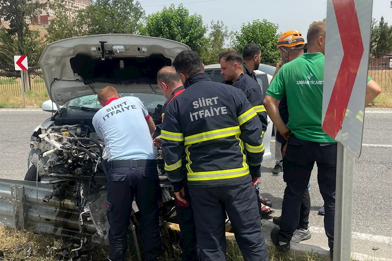 Kazada otomobilde sıkışan sürücü Çetin Yiğit, olay yerine sevk edilen Siirt Belediyesi İtfaiye Müdürlüğü ekiplerinin yoğun çabalarıyla araçtan çıkarıldı.