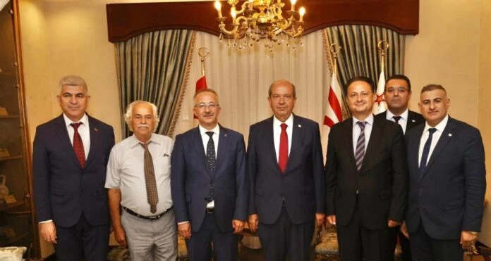 Cumhurbaşkanı Ersin Tatar, Türkiye Cumhuriyeti Cumhurbaşkanlığı Devlet Arşivleri Başkanı Prof. Dr. Uğur Ünal ve Türkiye Cumhuriyeti Cumhurbaşkanlığı Kütüphaneler Daire Başkanı Ayhan Tuğlu’yu kabul etti.