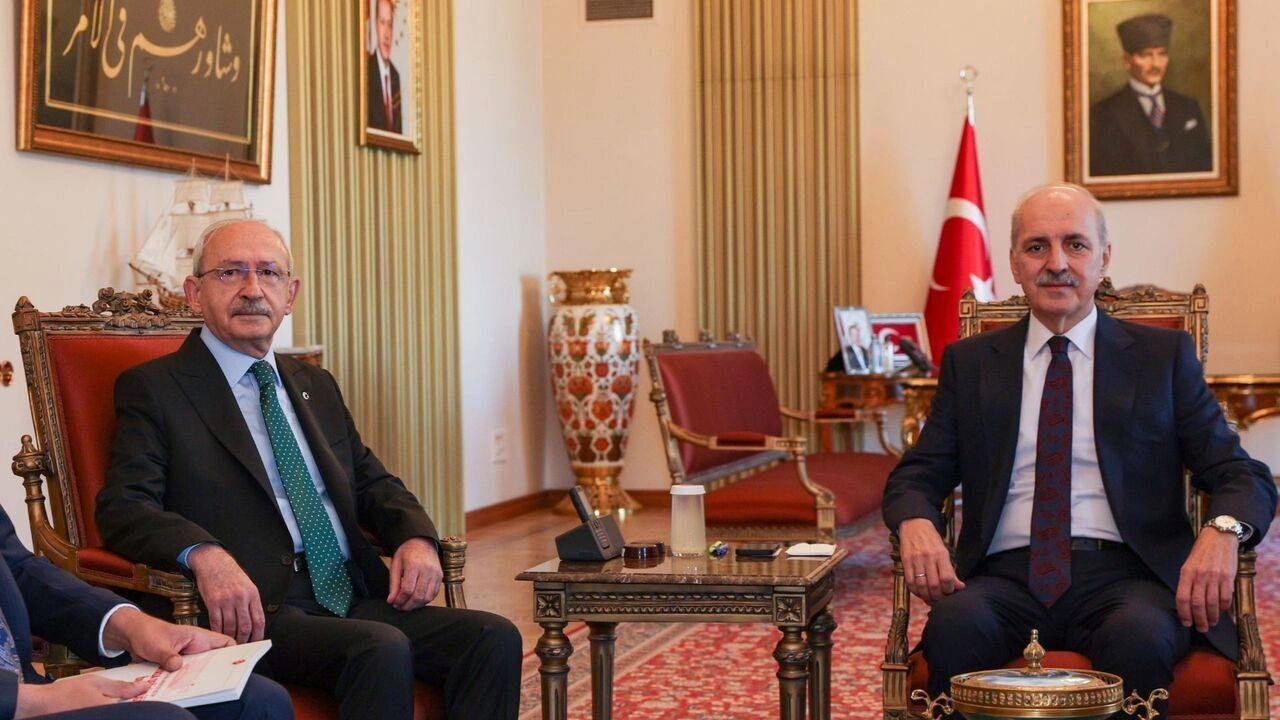 CHP Genel Başkanı Kemal Kılıçdaroğlu, TBMM Başkanı Numan Kurtulmuşu ziyaret etti. Kılıçdaroğlu ile Kurtulmuş bir araya geldi.