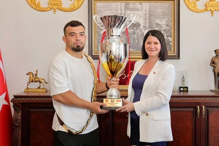 Edirne Belediye Başkanı Av. Filiz Gencan Akın, 663. Kırkpınar Yağlı Güreşleri’nde final müsabakasında rakibi Mustafa Taş’ı mağlup ederek, ikinci kez altın kemeri kazanan Yusuf Can Zeybek’i kabul etti. Edirne Belediyesi Başkanlık Makamı’nda gerçekleştirilen ziyarete Yusuf Can Zeybek ve beraberindeki heyet katıldı.