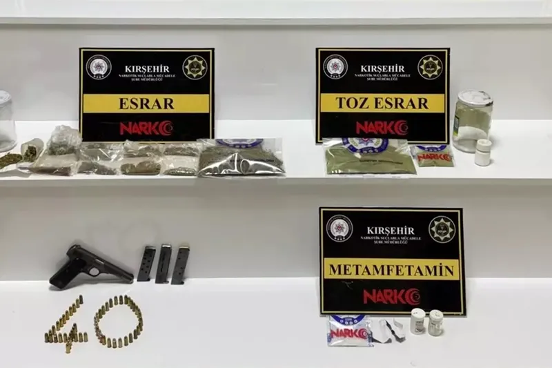 Aramada, 1 ruhsatsız tabanca, 3 şarjör ve 63 tabanca fişeğinin yanı sıra 11 parça halinde toplam 119,91 gram esrar, 113 gram toz esrar ve 7,62 gram metamfetamin ele geçirildi.