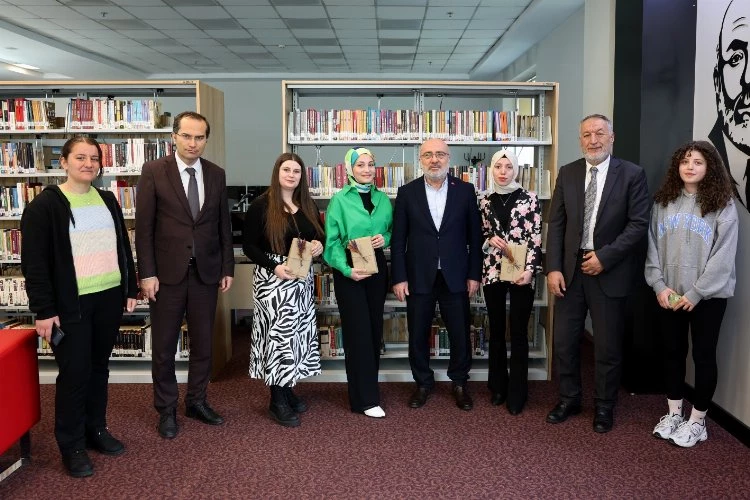 Kayseri Üniversitesi’nde “25 Mart - 31 Mart Kütüphaneler Haftası” dolayısıyla düzenlenen etkinlikte Rektör Prof. Dr. Kurtuluş Karamustafa, Üniversite Kütüphanesinde en fazla kitap okuyan öğrencileri kitapla ödüllendirdi.