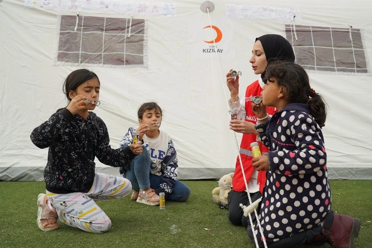 Kahramanmaraş depremlerinin birinci ayında Kızılay’ın psikolog ve sosyal hizmet uzmanları afetzedelerin afetin meydana getirdiği travmaları atlatmasına yardımcı oluyor.