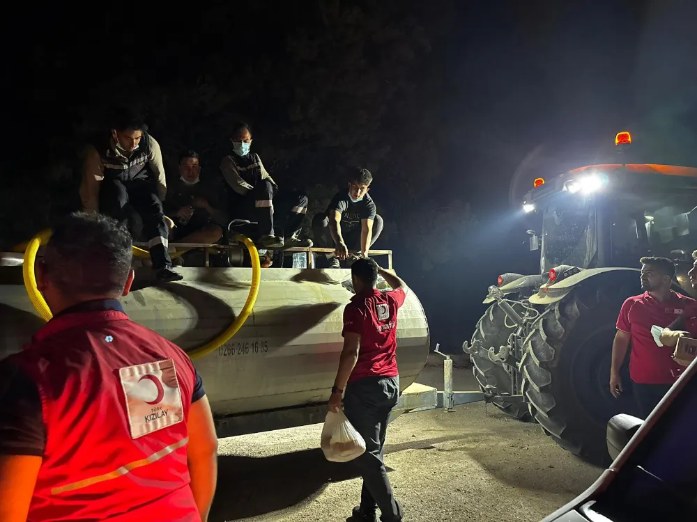 Genel merkezden yapılan açıklamada, yangın söndürme personeli ve gönüllülere soğuk içecek, ikramlık yiyecek, beslenme desteği ve temel ihtiyaç malzemelerinin ulaştırıldığı belirtildi.
