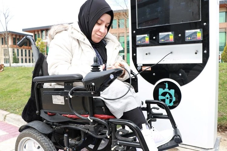 Engelli bireylerin çekinmeden şehir merkezine gelmelerine imkân sunan akülü şarj istasyonları engelli vatandaşların yağmur ve güneşin etkilerden koruyacak şekilde yapıldı. Üstü kapalı olan istasyonlar, aynı anda 3 engelli aracın şarj yapmasını sağlayacak şekilde tasarlandı. Hızlı şarj özelliğine sahip ve tekerlekli sandalye aküsünün amper seçiminin de yapılabildiği şarj istasyonları engelli bireylerin hiçbir ücret ödemeden akülü araçlarını şarj edebilecekleri, sosyal alanlarda daha fazla zaman harcamalarına vesile olmaktadır. Araçlarını şarj eden vatandaşlar ayrıca şarj istasyonuna kurulan LCD ekrandan da bilgilendirme görselleri ve videolarını da seyredebilecekler.