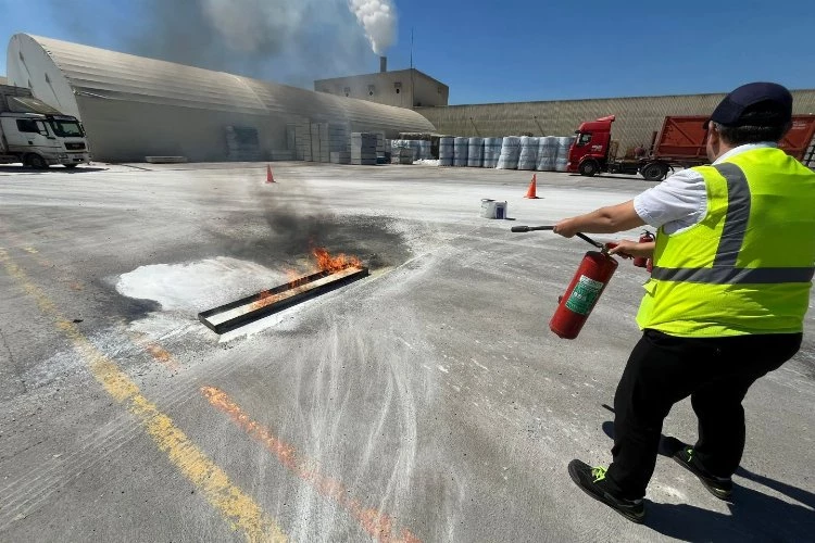 Kocaeli Büyükşehir Belediyesi olası yangın ve afetlere karşı fabrikalarda tatbikat gerçekleştiriyor