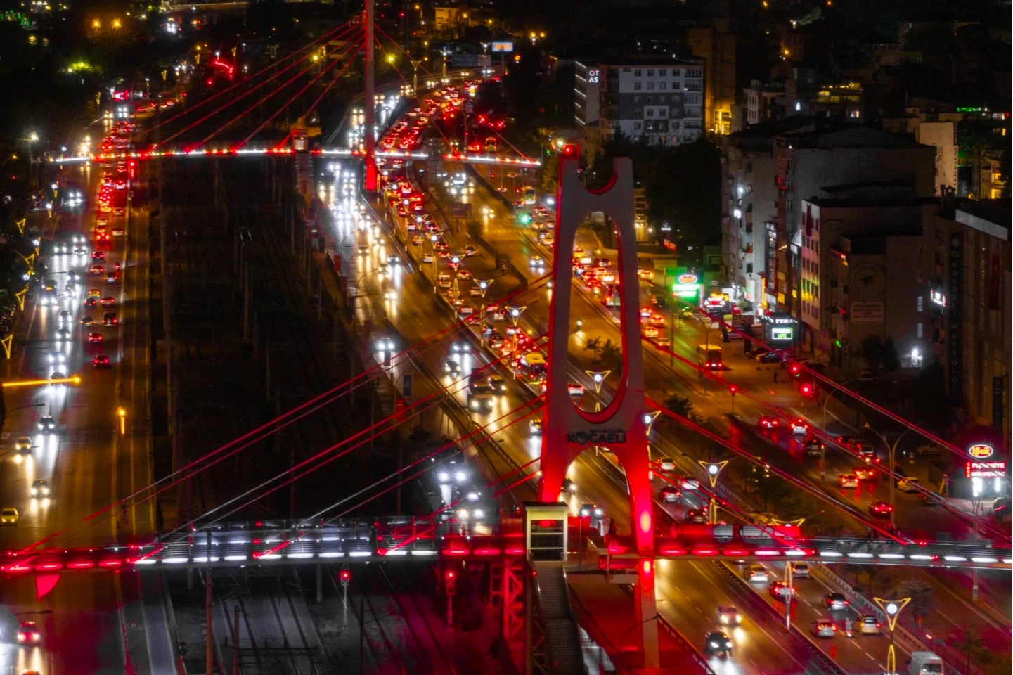 Vatan sevgisinin simgesi olan Türk bayrağından ilham alınarak gerçekleştirilen ışıklandırma çalışması, Kocaeli’ye hem estetik bir dokunuş kattı hem de duygu yüklü bir atmosfer oluşturdu. Gece boyunca şehrin kalbinde parlayan kırmızı ve beyaz ışıklar, gökyüzünü adeta bir bayrak gibi süsledi.