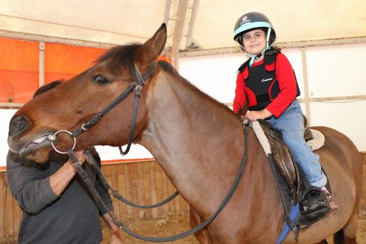 Kocaeli Büyükşehir Belediyesi Kadın ve Aile Hizmetleri Şube Müdürlüğünün organize ettiği “At Biniş Eğitimleri” 4 hafta sürüyor. Kocaeli Atlı Spor Merkezi’nde verilen eğitimler 4-6 yaş arası çocuklara yönelik gerçekleştiriliyor. Eğitimlerde çocuklara at sevgisi ve at bakımı öğretiliyor. Biniş esnasında atların ürettiği titreşimler çocuklarda öğrenmeyi geliştiren sempatik sinir sisteminin aktivasyonunu yönlendirip aynı zamanda fiziksel olarak denge, kas, koordinasyon, motor sinir sistemi gelişiminin desteklenmesine fayda sağlıyor.