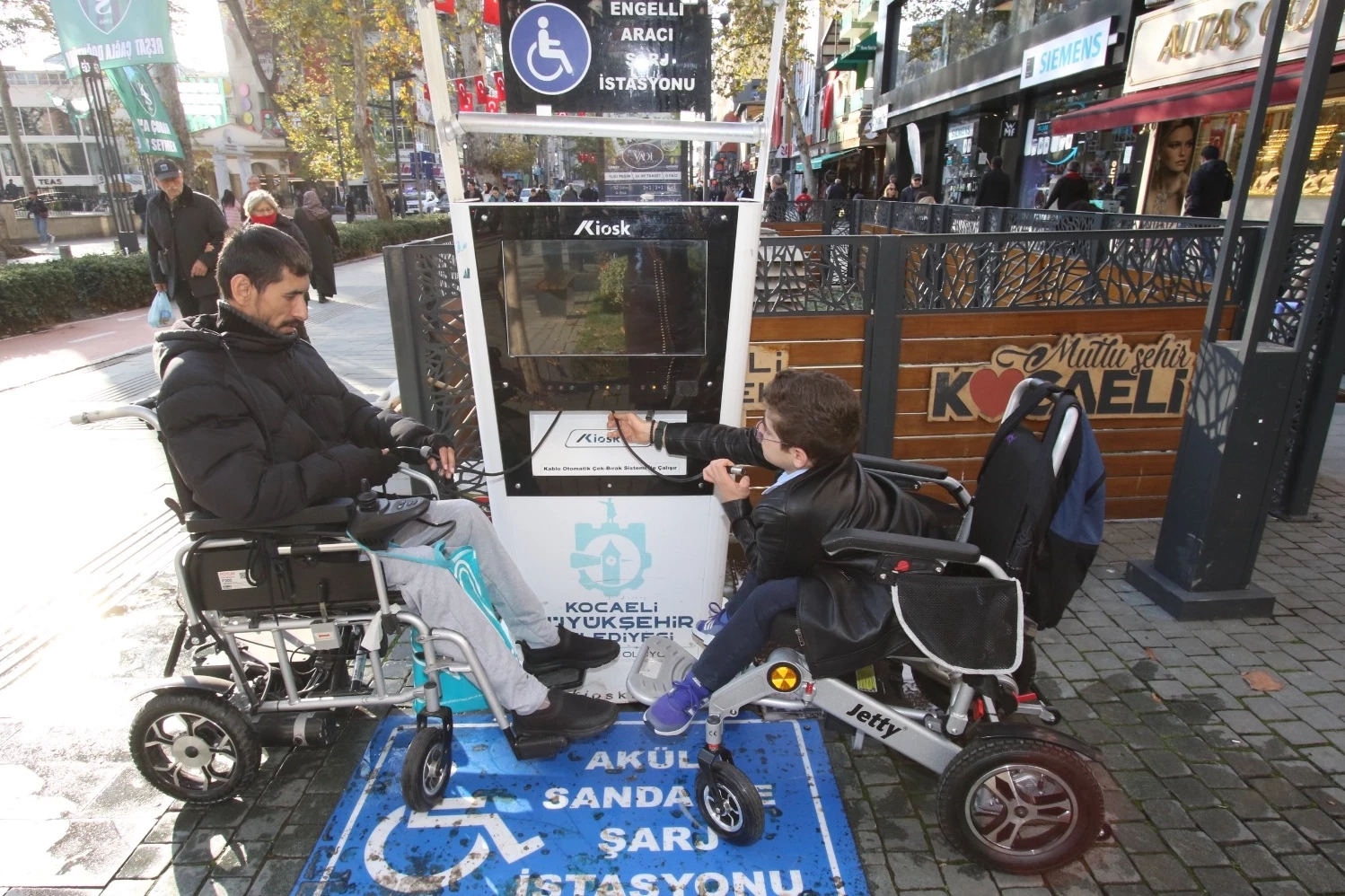 Kocaeli Büyükşehir Belediyesi Engelli ve Yaşlı Hizmetleri Şube Müdürlüğü tarafından projelendirilen şarj istasyonları; İzmit Cumhuriyet Bulvarı, Fevziye Cami karşısı, Yeni Cuma Cami önü, Endüstri Meslek Lisesi önü, Darıca Balyanoz Eğitim Tesisleri, Kartepe Belediyesi önü, Kandıra Otobüs Terminali, Başiskele Belediyesi önü, Gölcük Anıt park, Karamürsel Kaymakamlık önü ve Karamürsel Belediyesi önü ile Otogar, Körfez Tütünciftlik sahili, Tütünçiftlik Engelli Derneği önü, Hereke Kampüsü ve Mimar Sinan Mahallesi, Çayırova Belediyesi önü ve Fatma Çelik Engelli Merkezi önü, Gebze Kent Meydanı, Mevlana Pazar yeri, İstasyon Bilim Sanat Merkezi ve Eskihisar Macera parkında engelli vatandaşların hizmeti sunuluyor. Bu kapsamda Kocaeli’nin tüm ilçelerinde bulunan şarj istasyonlarının temizliği periyodik olarak yapılıyor.